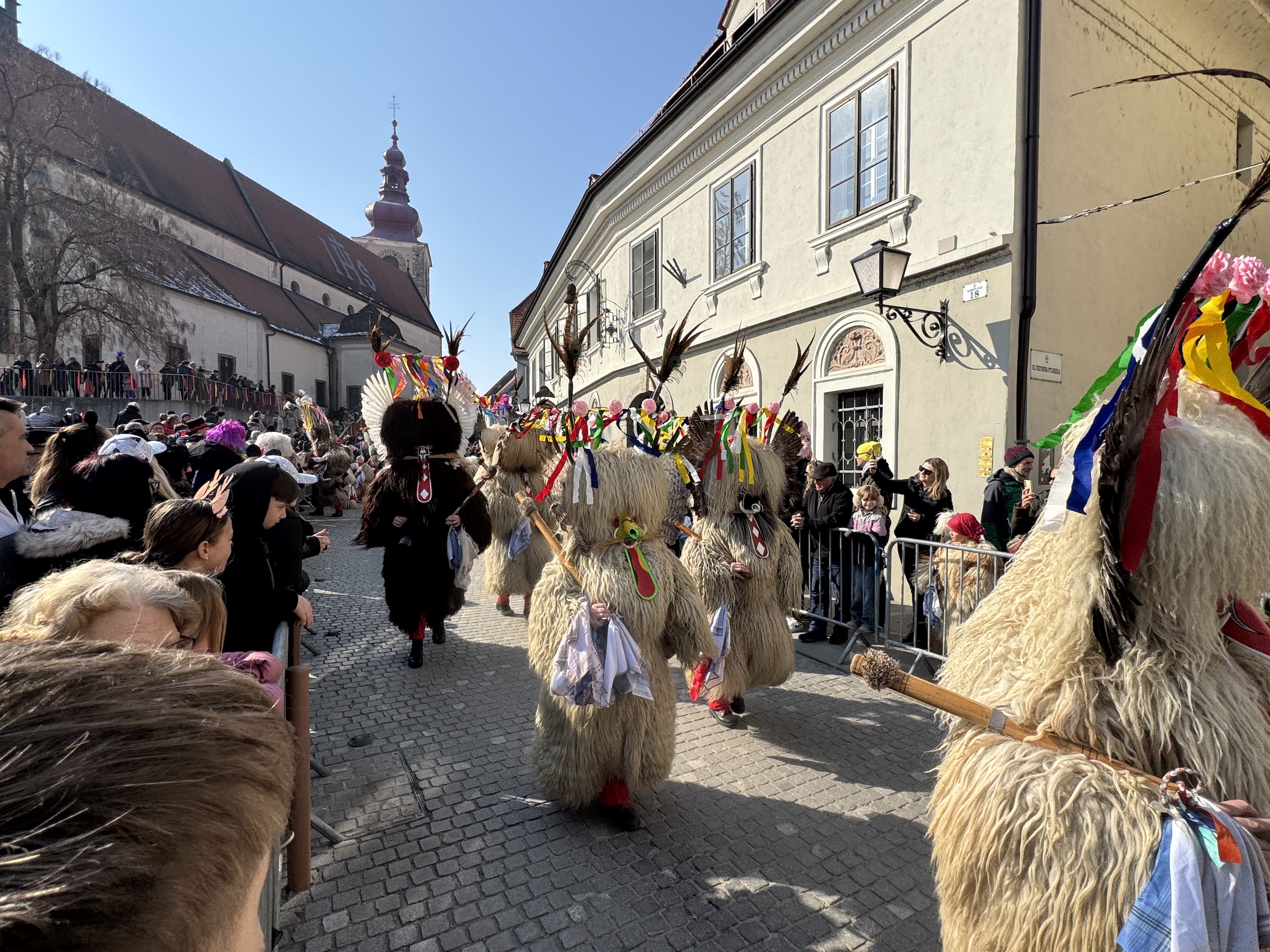 Je hoort het al voor je het ziet. Een diepe golf van bellen die door de historische straten rolt, alsof de stad in één keer wakker wordt. En dan komen ze tevoorschijn: harige figuren, maskers, veren, beweging. Kurentovanje voelt als een feest, maar ook als een ritueel. Ptuj wordt in deze periode omgetoverd tot het grootste openluchtmuseum voor etnografie waar immaterieel cultureel erfgoed wordt getoond. En dat is precies de magie. Je kijkt niet alleen naar folklore van een afstand, je staat er middenin.